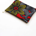 鮮やかなアフリカ布を使用したマチ無しフラットポーチです。
