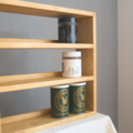 キッチンのスパイスラックとしての使用はもちろん、リビング、ダイニングの小物置き、趣味のグッズを飾る棚などどんな場所にも自然と馴染み、お部屋に温かみを添えます。
