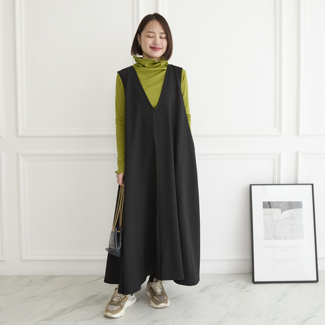 首回りすっきりでロンT、ニット、ブラウスなどインナーに合わせて着れるワンピ。
