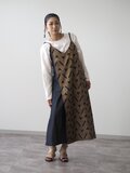 ブロックプリント/幾何学模様デニムワンピース