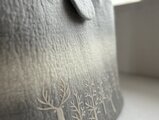 持った時の優しい肌触りを喜んでいただくことが多くそして軽さも魅力です。丁寧にしっかりとフェルト化させていますので厚く丈夫に仕上げてございます。