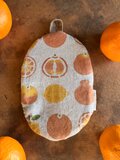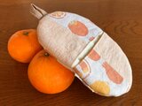 ミカンはたくさん種類もあり、楽しませてくれます。そんなおミカンを並べました。ベンガラ泥染めで染めた生地を使っています。