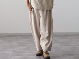 ふっくらとしたやわらかな肌触りの起毛リネンで作ったサーカスパンツ。