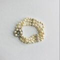 貝素材の丸玉に、オリジナルパール塗料にて何層にも渡り重ね塗りを施した日本製貝パールネックレス&ブレスレットになります。パール1つ1つの間に丁寧に結び目を入れたオールノット加工にて仕上げました。パールカラーはきめ細かい質感とほど良い艶感が特徴でスタンダードなクリームパール。自然なグラデーションを意識して調色したツートンカラーです。パールサイズは直径約6.5mm、長さはネックレスが内側から全長約53cm、真ん中約56.5cm、外側が全長約60cmのミディアム~マチネータイプのサイズ感で仕上げております。ブレスレットは留め具を含む全長約20cmに。ラインストーンと樹脂パールをふんだんに付けた華やかなクラスプがアクセントとなっております。ネックレスは普通に背面で留めて頂いたり、アクセントとしてサイドに持ってきたりとアレンジしてもお使い頂けます。