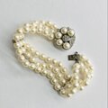 貝パール3連オールノットネックレス&ブレスレット/約6.5mm/クリームツートン/made in japan vintage