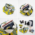 アフリカ布の魅力に実用性を備えたバッグです。裏地に帆布を合わせた丈夫な作りで、荷物を出すと八角形の形になって折りたたむことも可能です。