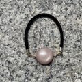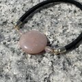 コインのオレンジムーンストーンと4㎜のローズクォーツのヘアゴムです。