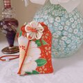 素敵なお守り袋が2つ届きました。 絞りの生地の色合いと大輪の花がとても華やかでキュートです。 白梅のものは、奥ゆかしさと気品を感じました。 どちらも大変気に入りました。大切に使わせていただきます♪