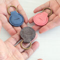 マグネットキーホルダー LF-019 名入れ、メッセージ刻印対応 レザー 牛革 本革 強力磁石 丸 円形 キーリング