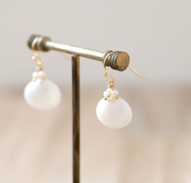 こちらはほんのりと生成色を帯びた白い貝殻を使用しています。
