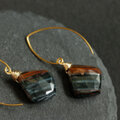 日本の伝統色を纏う|タイガーアイの和モダンなロングフックピアス|14kgf