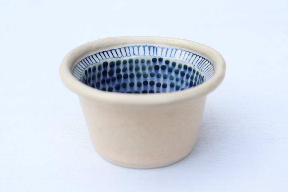 小鉢 開花③いつも丁寧な対応に、素敵な品で感謝です。 手に取って心地良い存在感に、花弁広がる縁が可愛くて、見てて飽きないいっぱいの点々が楽しいです。 入れたものが美味しく映える黒が、独特の輝きでカッコええです。 またお気に入りが増え嬉しく、ありがとうございます。