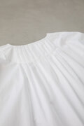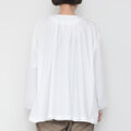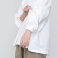 こちらのブラウスは、袖をたくしあげたときにもきれいなシルエットを保つよう、袖口にゴムをあしらったデザインがポイントです。