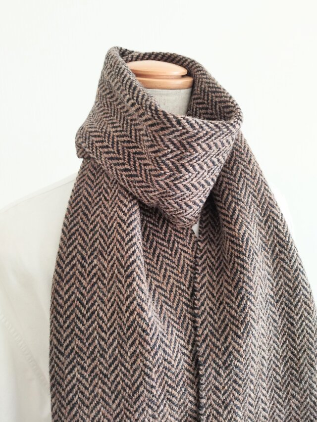 膨らみの良い上質なウール糸を、一段一段手織りで仕立てたマフラーです。