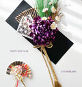 華やかに輝く紫色と、熊手の組み合わせに、日本の伝統とスタイリッシュさを感じるパープルマムの熊手お正月飾りです。