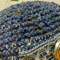 控えめなラメの入ったファンシーヤーンを引きそろえて編んだ帽子です。