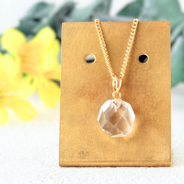 クォーツに32面のブリリアントカットを施したペンダントネックレス。