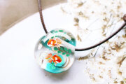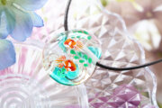 水色を混ぜた透明の地に、金魚を泳がせました。