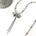 #ネックレス #ビーズアクセサリー #アンティーク #クラシック #メタル #シック #リボン #りぼん #メタルグレー #チェーン #キラキラ #Y字 #タッセル #上品 #母の日 #誕生日 #パール #シルバー #Yネックレス #ロングネックレス #春 #夏 #秋 #冬 #通年 #オールシーズン #大人かわいい #クリスマス #ご褒美 #パーティー #かわいい #フェミニン #Y字ネックレス #モノトーン #クール