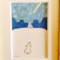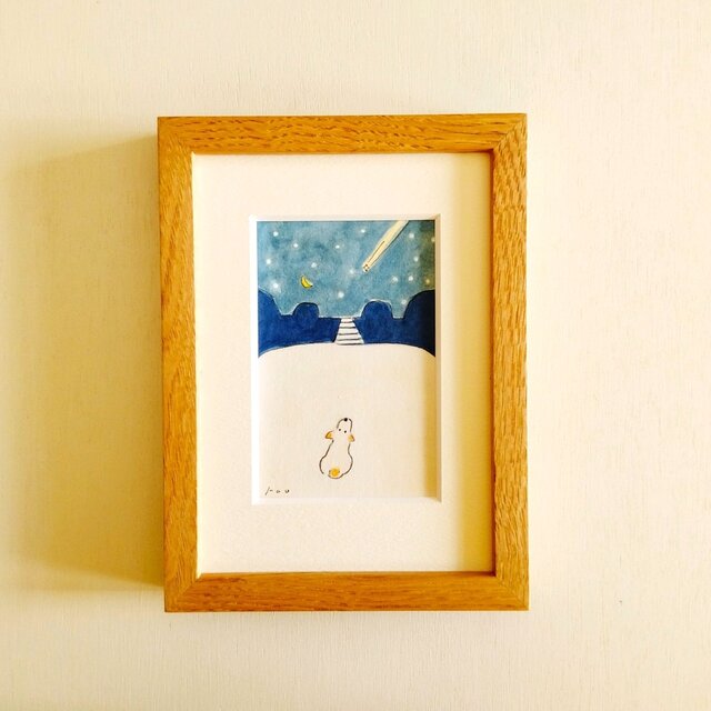 【星に願いをこめて】原画「流れ星」 ※2L木製額縁入り・水彩・インテリアアート・犬の絵