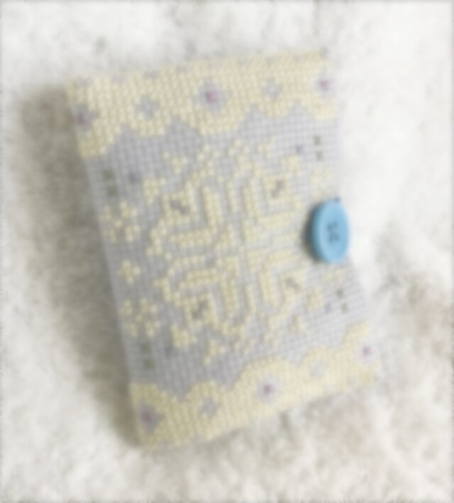 クロスステッチ用布地に幾何学模様の刺繍を施したブック型のニードルケースです。