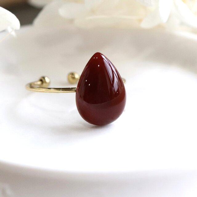 レッドアゲート天然石 1粒フリーリング 秋色 秋冬 --Red drop--