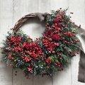 赤い木ノ実と真紅の鶏頭の花を散りばめアレンジされたリースで可愛いくセンスの良いステキなリースでした