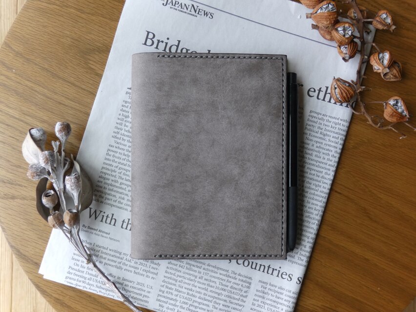 ・手帳のように開いて使う横型のメモカバーです。メモ帳もA6サイズなので、他のA6ノートとの組み合わせも楽しむことが出来ます。