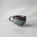 この海鼠釉薬は、大変デリケートな釉薬で、その時の窯の温度や、雰囲気によって、もっと明るい色になったり、白っぽくなったり、このカップのように流れが美しいブルーになったりします。