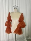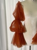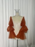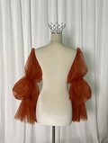 パフスリーブ テラコッタ色 ロングスリーブ ソフトチュール 結婚式 ストレッチ 前撮り 色直し
