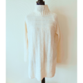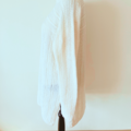 ボタンの大きさがポイントになっているオフホワイトのカーディガン、届きました。縦に並んだボタンがとてもいいです。白は汚れそうで購入するのに勇気がいりましたが、手編みを探して大事に着るようにすれば良いかと思い切りました。華やかなホワイトで、着るのも楽しみです。 ありがとうございました。
