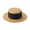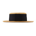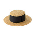 やや長めのつばと存在感たっぷりの太いリボンが魅力の鬼麦カンカン帽。