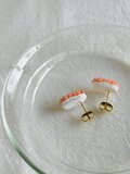 ライン型のピンク珊瑚の周りを、同じく小粒で可愛らしいピンク珊瑚をぐるりと一粒づつ刺繍しました。
