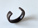 金属を挟み込むように縫い上げた存在感のあるバングルです。