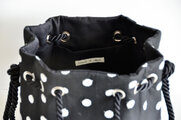 冬の夜空にきらめく星や、街に輝くイルミネーションのような、ゴールドのドット刺繍がきらめきます。手にとるだけで心躍る魅力的なマリンバッグです♪