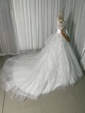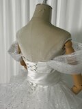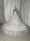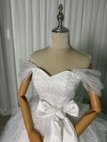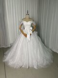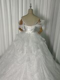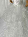 美品!ウェディングドレス オフショルダー キラキラグリッターチュール サッシュベルト ラッフルフリル 結婚式