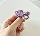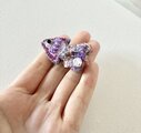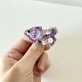 尻尾には、うすいピンクのお花のスパンコールや、透明、紫の丸いスパンコールやビーズを散りばめ、1番大きさのあるビーズにはクリスタルビーズを使いました。