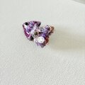 全体の刺繍糸は太さの様々な糸を使いました。紫色の色調の異なる糸を使い、全体には紫一色カラーに見えますが、ビーズやスパンコールなどの素材も含めて見ていただくと、いろいろな紫色が入っています。