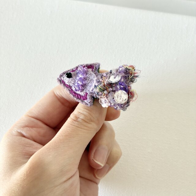"ふんわりきらり小さな紫色のお魚" ちいさなお魚刺繍ミニブローチ 秋冬ブローチ