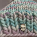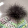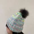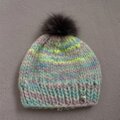 手編みニット帽・ファーポンポン付き手染めサックス