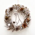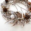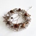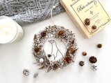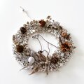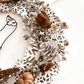 ウッドスノーフレークリース 紐 ウッドビーズ ブロンズカラーアルミワイヤー