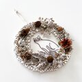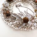 ウッドスノーフレークリース 紐 ウッドビーズ ブロンズカラーアルミワイヤー