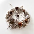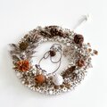 ウッドスノーフレークリース 紐 ウッドビーズ ブロンズカラーアルミワイヤー