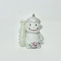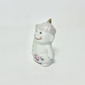 ピンクの髪のかわいい小鬼のフィギュリンは、バラのパンツを履いています。