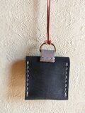 レザーネックレス 小物入れ コインケース 黒✗グレー オイルヌメ(シュリンク)