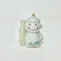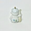ブルーの髪のかわいい小鬼のフィギュリンは、ブルーの花のパンツを履いています。