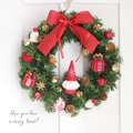 北欧の妖精ニッセをモチーフにしたサンタがちょこんと乗ったクリスマスリース