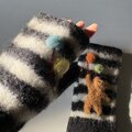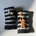 テディベアちゃんと風船柄のフェルティンゆびなしミトン ボーダー
