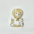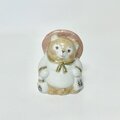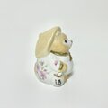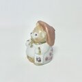 トックリと大福帳を持った、昔懐かしい酒屋のタヌキの置物のミニチュア版の、小さな白磁に絵付けしました。