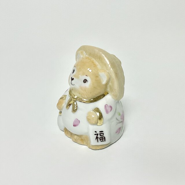 桜の柄の羽織と、可愛らしい表情、トックリと「酒」と「福」の字などが、お正月、開店のお祝いなどのおめでたい場面にピッタリだと思います。